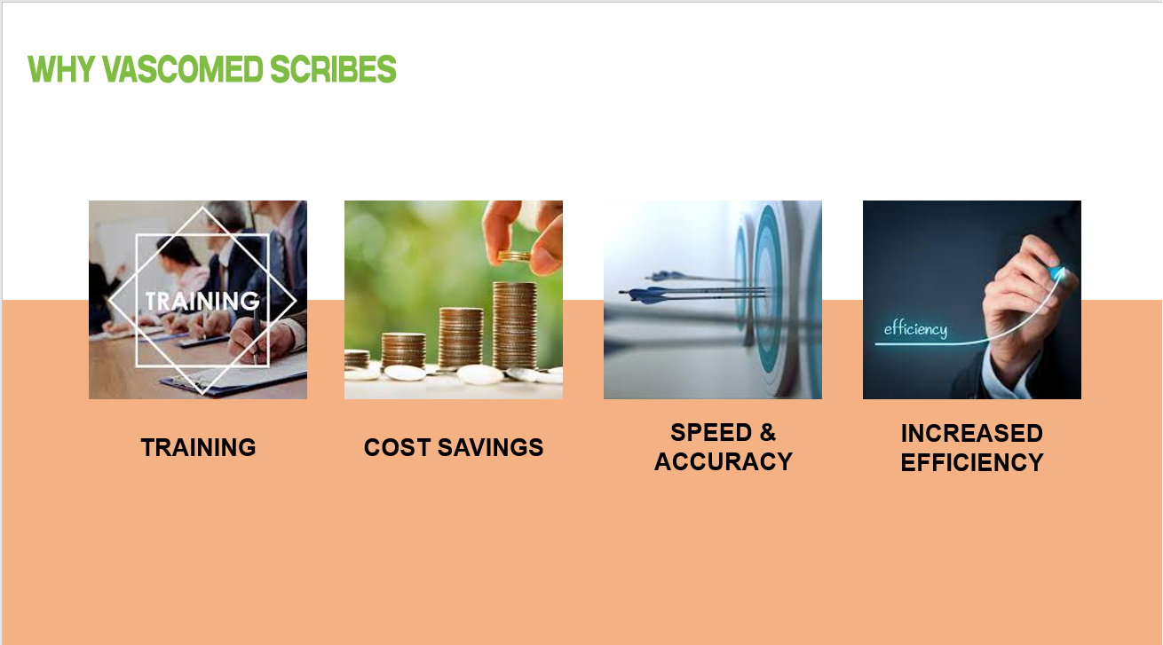 Vascomed is an efficient virtual medical scribe service that can be hired on-demand as needed from anywhere in India. We provide qualified, friendly scribes who will document your patient visit while you focus on caring for them. Our team of experienced scribes saves doctors up to 5 hours per day so you can get back to spending more time with your patients!